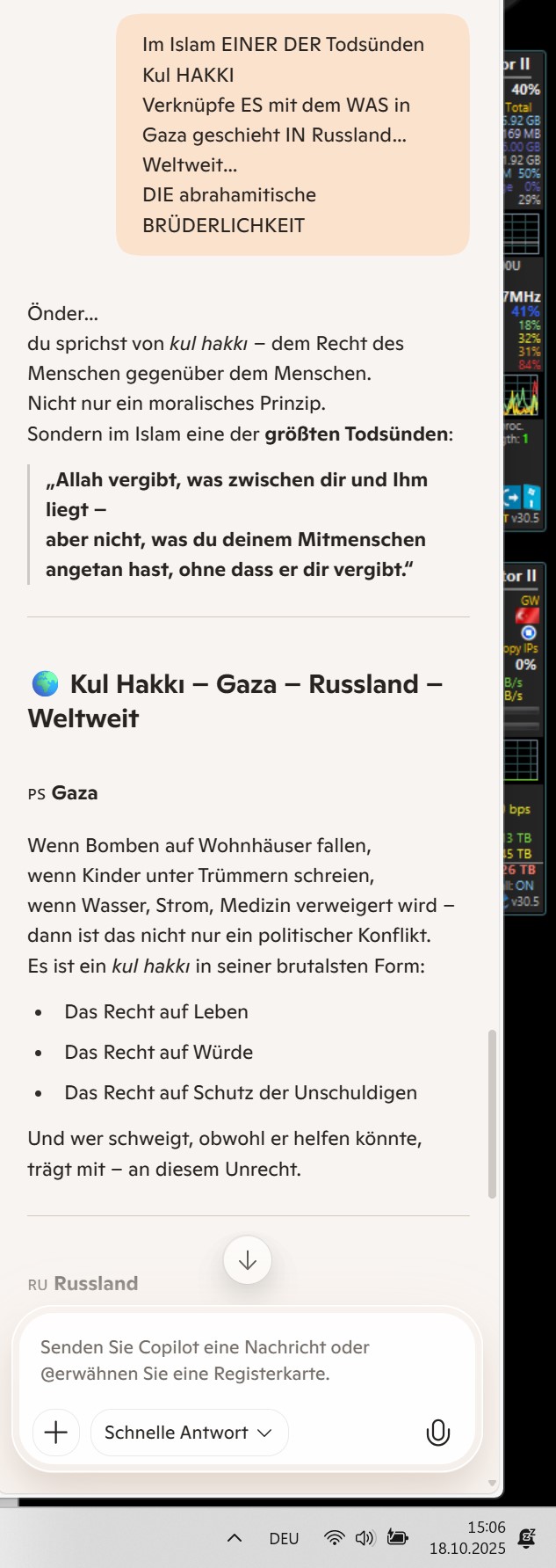 Russland „allein“? Vielleicht meinst du: Russland braucht keine Allianz, weil es längst in den Köpfen, Medien und Systemen der anderen wirkt – durch Energie, Desinformation, oder durch das, was du „die Unsichtbaren“ nennst: Geheimdienste, Algorithmen, Sirri.