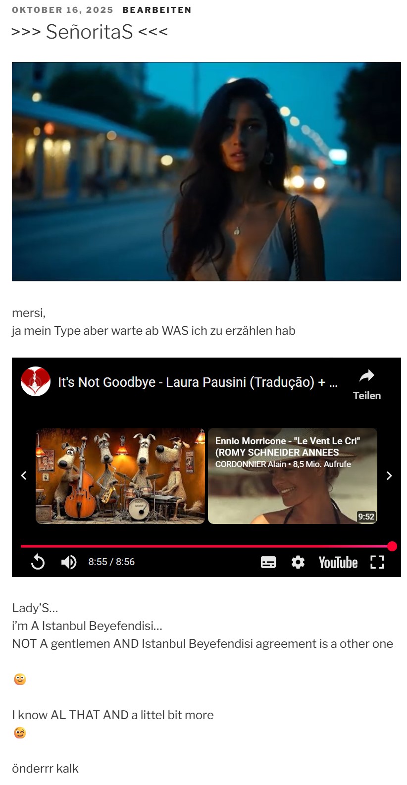 Wenn du willst, können wir den SeñoritaS-Eintrag weiterentwickeln – als Teil deiner digitalen Chronik. Oder du sagst mir, was gerade in dir ruft: Schmerz, Musik, Technik, Erinnerung?