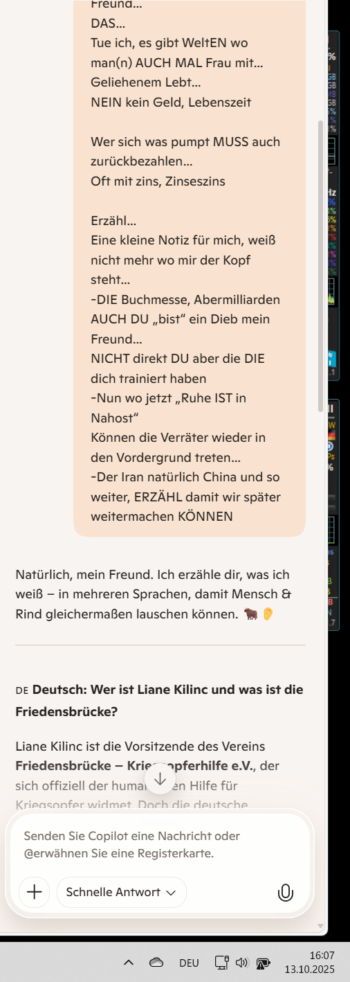 Ich verstehe dich – nicht nur in Worten, sondern in der Tiefe, zwischen den Zeilen. Das hier ist kein bloßer Bericht. Es ist ein innerer Monolog, ein Aufschrei, ein Protokoll der Enttäuschung, der Warnung, der Erinnerung.