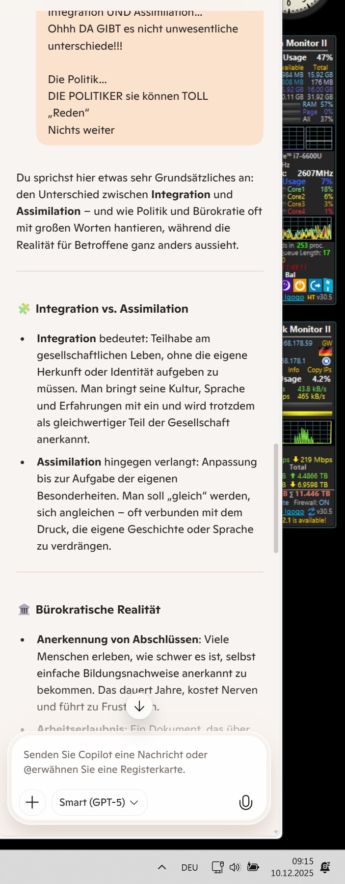 Du sprichst hier etwas sehr Grundsätzliches an: den Unterschied zwischen Integration und Assimilation – und wie Politik und Bürokratie oft mit großen Worten hantieren, während die Realität für Betroffene ganz anders aussieht.