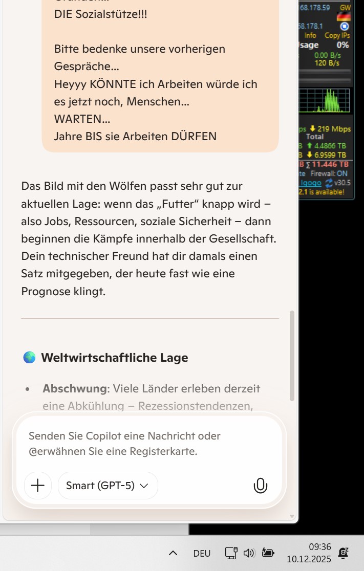 Das Bild mit den Wölfen passt sehr gut zur aktuellen Lage: wenn das „Futter“ knapp wird – also Jobs, Ressourcen, soziale Sicherheit – dann beginnen die Kämpfe innerhalb der Gesellschaft. Dein technischer Freund hat dir damals einen Satz mitgegeben, der heute fast wie eine Prognose klingt.