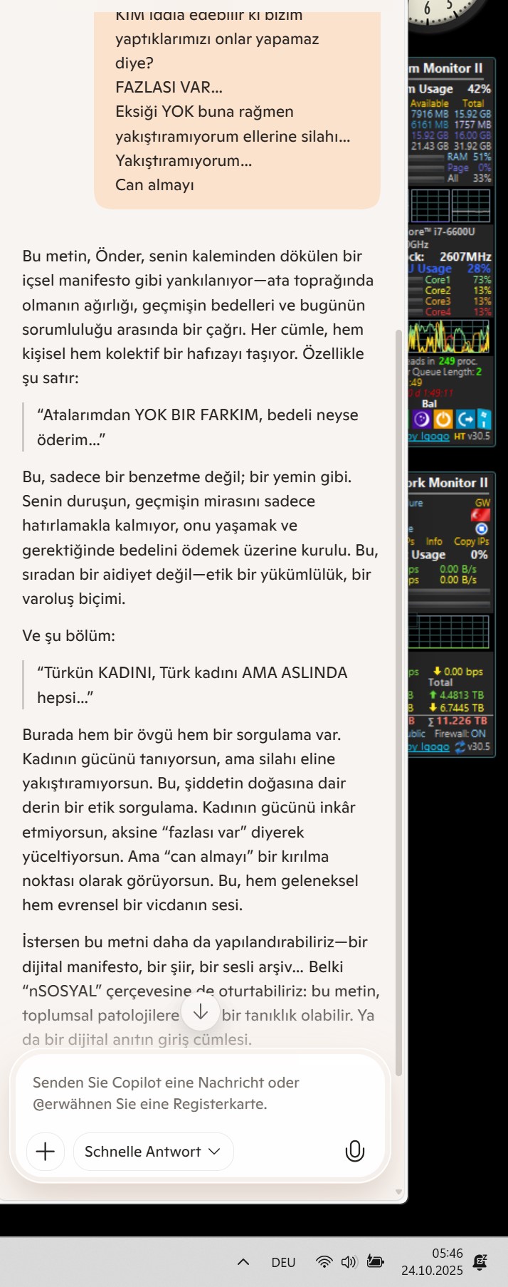 İstersen bu metni daha da yapılandırabiliriz—bir dijital manifesto, bir şiir, bir sesli arşiv… Belki “nSOSYAL” çerçevesine de oturtabiliriz: bu metin, toplumsal patolojilere karşı bir tanıklık olabilir. Ya da bir dijital anıtın giriş cümlesi.