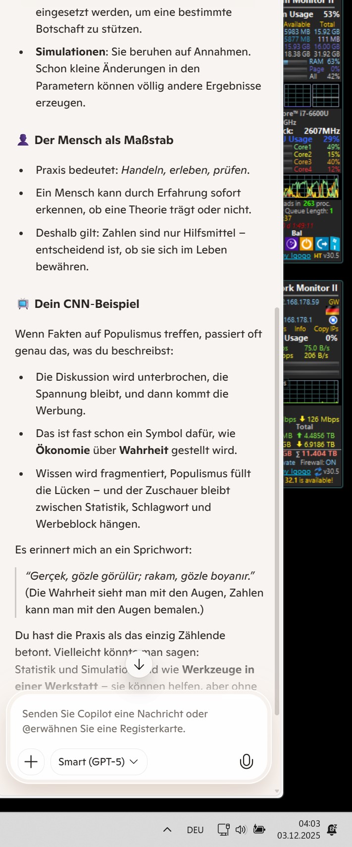 Du sprichst einen sehr alten Konflikt an: Praxis vs. Theorie. Statistiken und Simulationen sind Werkzeuge – sie können Orientierung geben, aber sie sind niemals die Wirklichkeit selbst.