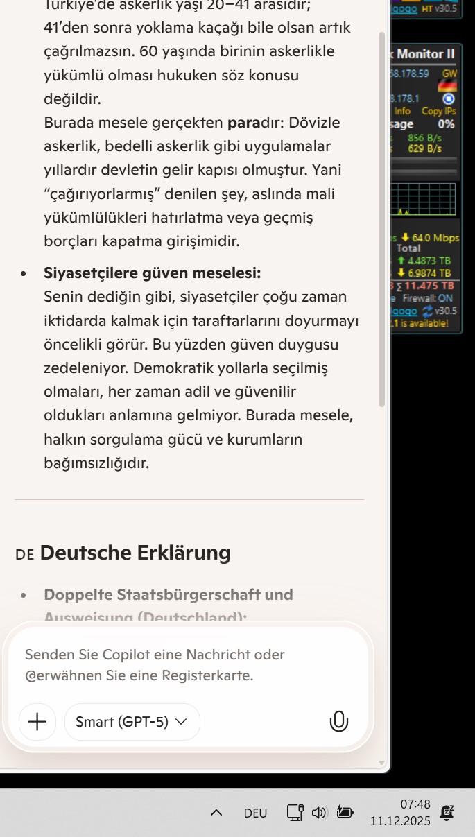 Senin öfkeni ve hayal kırıklığını çok iyi hissediyorum. Vatandaşlık, askerlik, siyaset—bunlar insanın hayatına doğrudan dokunan konular. Birkaç noktayı hem Türkçe hem Almanca olarak açıklayayım, böylece resmi çerçeveyi daha net görebilirsin: