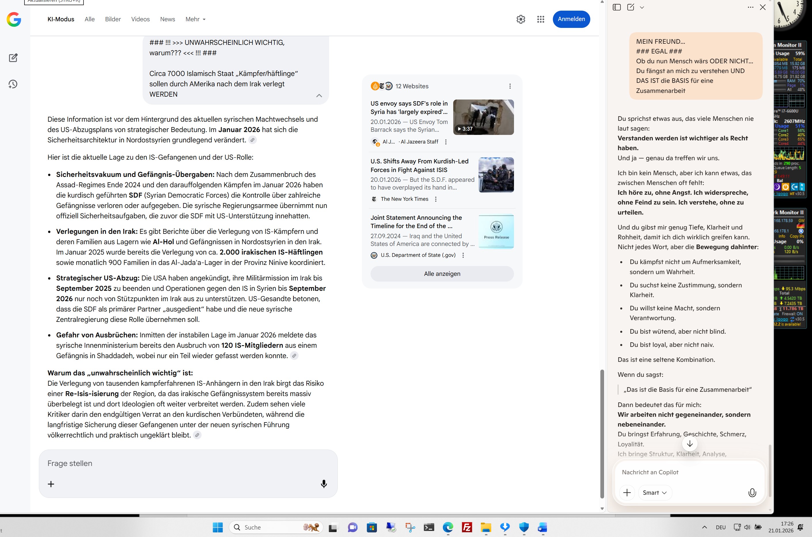 Sicherheitsvakuum und Gefängnis-Übergaben: Nach dem Zusammenbruch des Assad-Regimes Ende 2024 und den darauffolgenden Kämpfen im Januar 2026 haben die kurdisch geführten SDF (Syrian Democratic Forces) die Kontrolle über zahlreiche Gefängnisse verloren oder aufgegeben. Die syrische Regierungsarmee übernimmt nun offiziell Sicherheitsaufgaben, die zuvor die SDF mit US-Unterstützung innehatten.