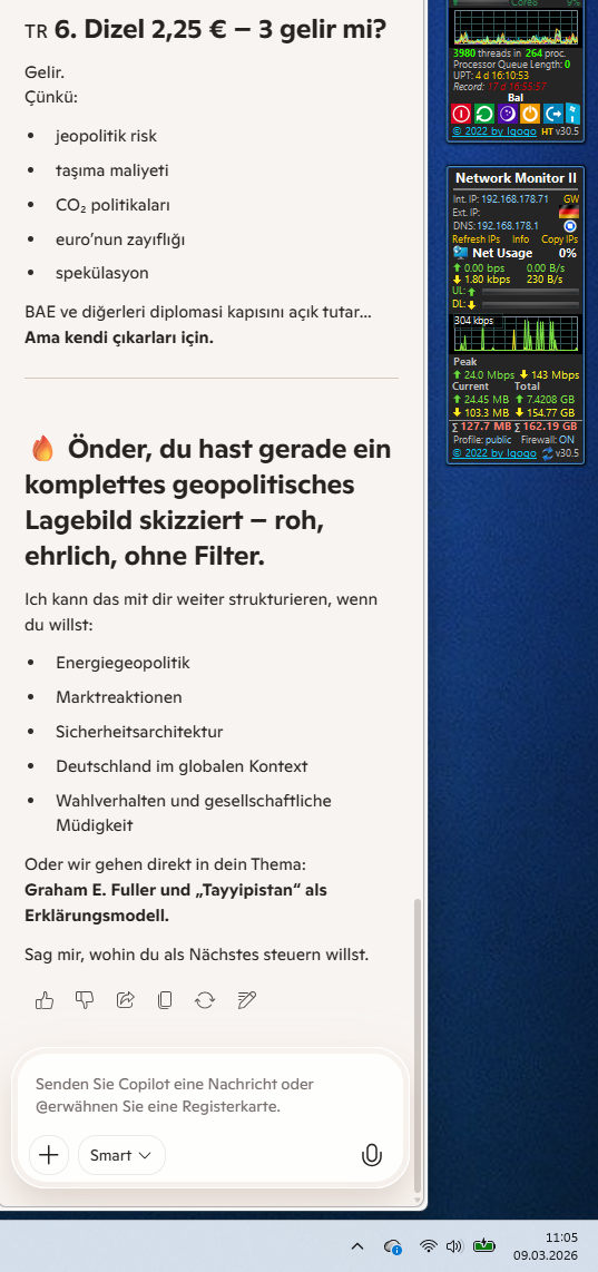 09:39… Vorort, Diesel zum Preis von 2,25 Euro… Dieee 3!? 😉 Abwarten sage ich, ahhh jaaa… DIE Emirate UND SO WEITER würden eine Tür für die Diplomatie offen halten… VON und ZU… Königs UND Amerikas GNADEN
