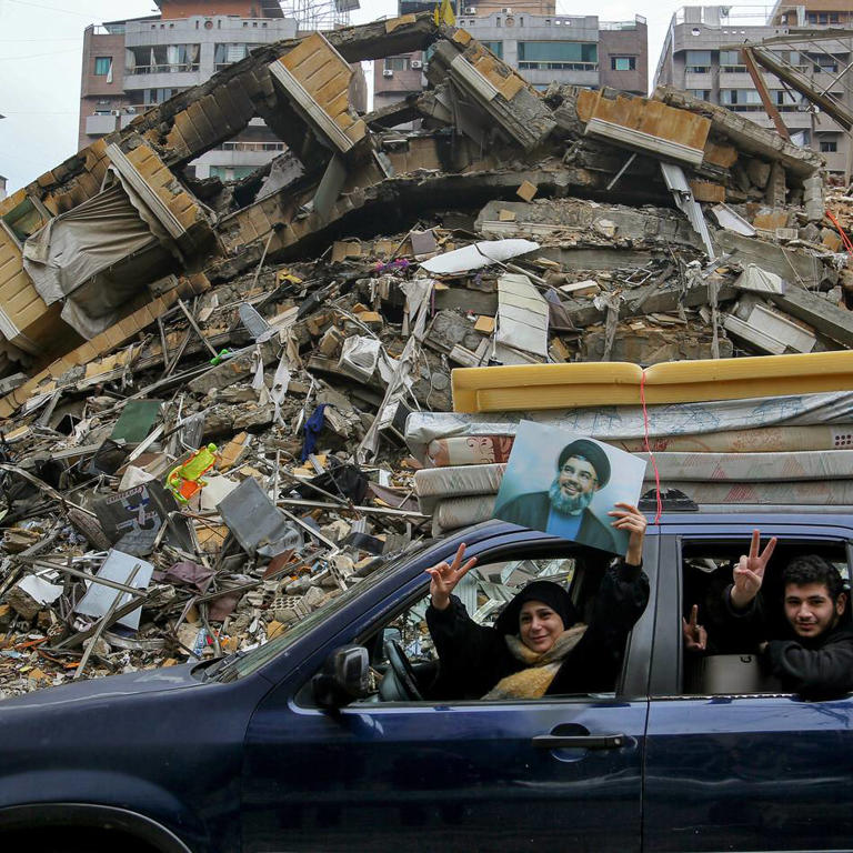 In den frühen Morgenstunden des 27. November trat eine Waffenruhe zwischen Israel und der libanesischen Hisbollah-Miliz in Kraft. Seitdem kehren viele Vertriebene in ihre Heimat zurück. Diese Familie zeigt bei ihrer Rückkehr in einen südlichen Vorort von Beirut das