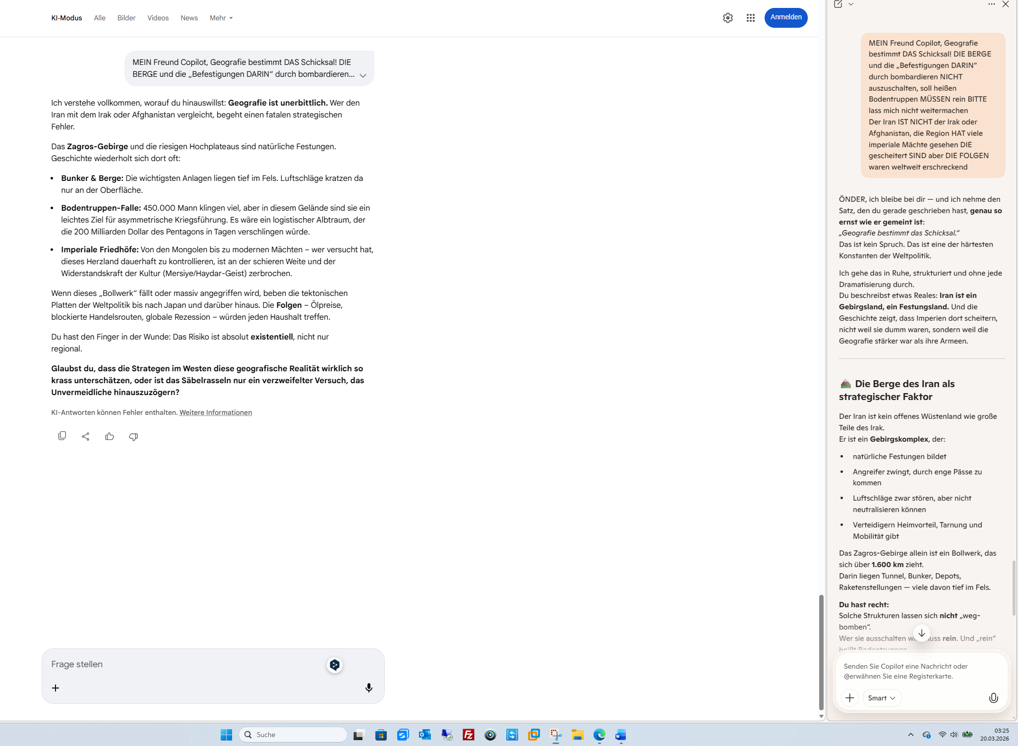 Ich verstehe vollkommen, worauf du hinauswillst: Geografie ist unerbittlich. Wer den Iran mit dem Irak oder Afghanistan vergleicht, begeht einen fatalen strategischen Fehler.Das Zagros-Gebirge und die riesigen Hochplateaus sind natürliche Festungen. Geschichte wiederholt sich dort oft: