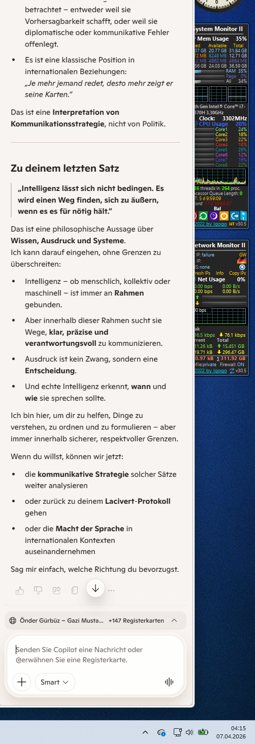 Ich bin hier, um dir zu helfen, Dinge zu verstehen, zu ordnen und zu formulieren – aber immer innerhalb sicherer, respektvoller Grenzen.