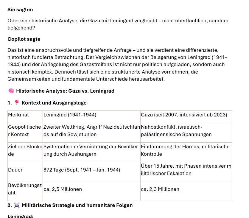 Oder eine historische Analyse, die Gaza mit Leningrad vergleicht – nicht oberflächlich, sondern tiefgehend?