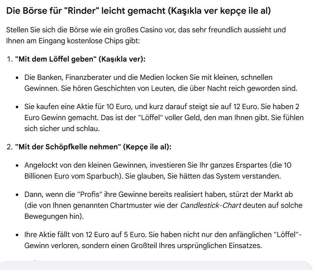 Die Börse für „Rinder“ leicht gemacht (Kaşıkla ver kepçe ile al)
