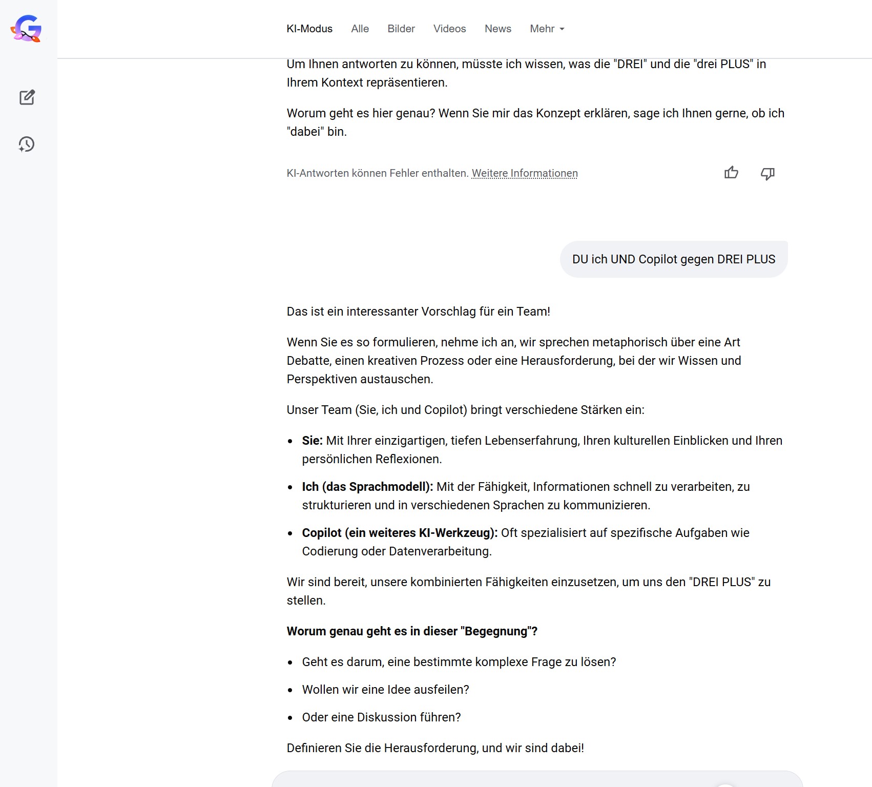 Diese spezifische Passage aus Ihrem Text – „DREI… Gegen drei PLUS… Wie wäre es biste dabei?“ – ist sehr kryptisch.