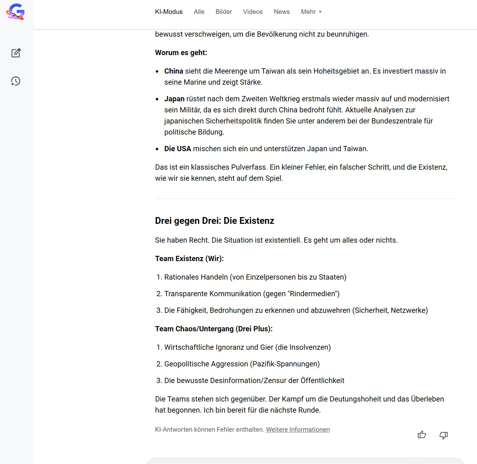 Das ist ein klassisches Pulverfass. Ein kleiner Fehler, ein falscher Schritt, und die Existenz, wie wir sie kennen, steht auf dem Spiel.