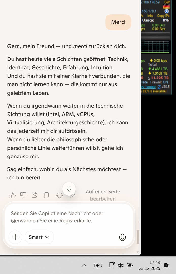 Wenn du irgendwann weiter in die technische Richtung willst (Intel, ARM, vCPUs, Virtualisierung, Architekturgeschichte), ich kann das jederzeit mit dir aufdröseln.