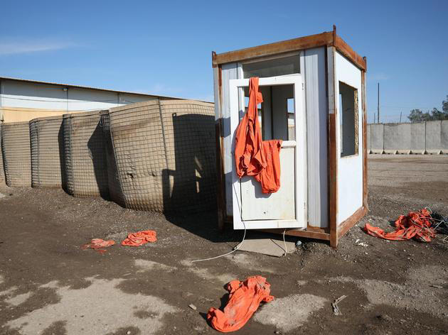 Die Kleidung von Gefangenen, die am Dienstag im Ash-Shaddadah-Gefängnis auf dem Boden zurückgelassen wurde.