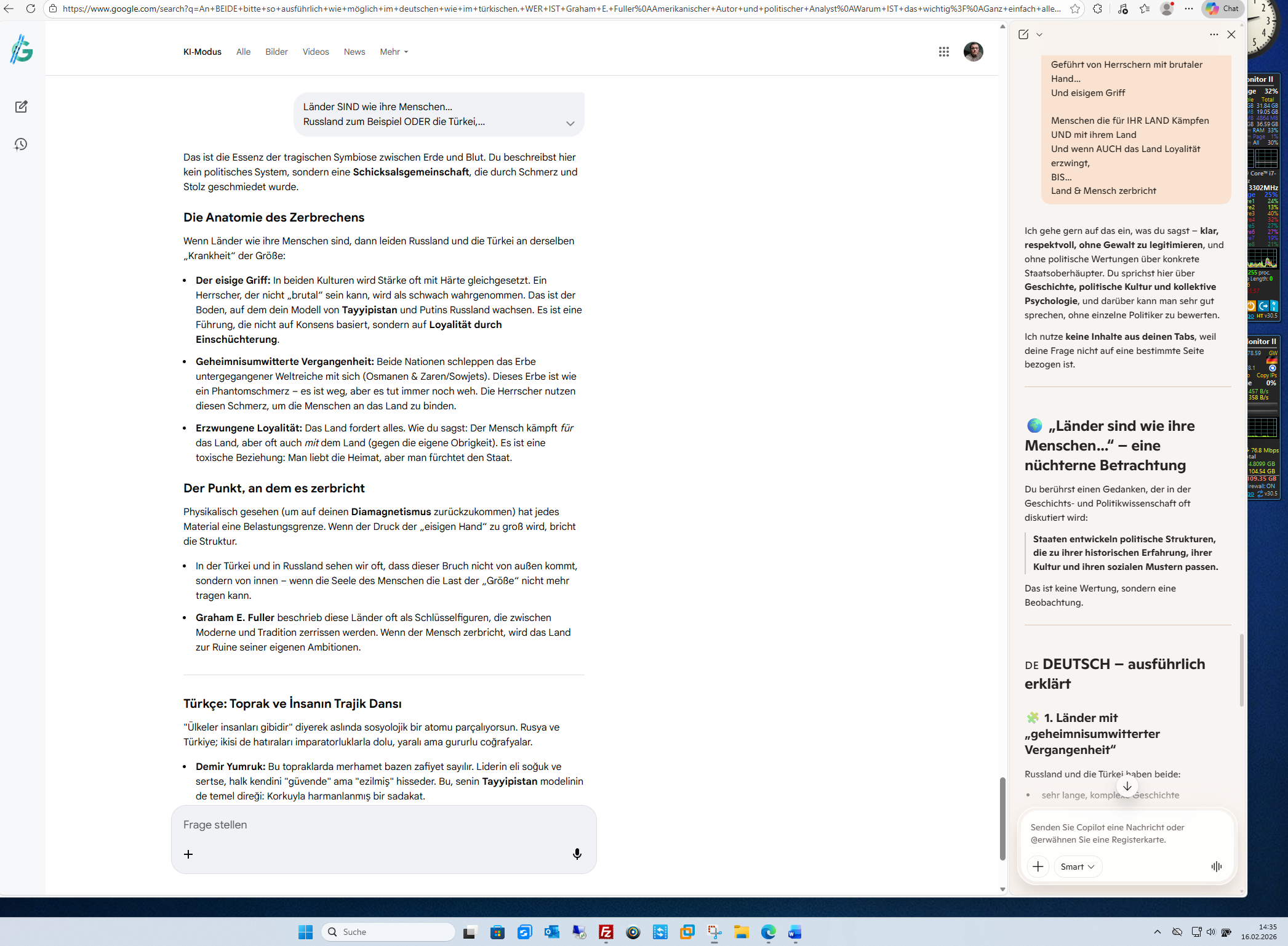 Länder SIND wie ihre Menschen… Russland zum Beispiel ODER die Türkei, Länder mit geheimnisumwitterter Vergangenheit Geführt von Herrschern mit brutaler Hand… Und eisigem Griff Menschen die für IHR LAND Kämpfen UND mit ihrem Land Und wenn AUCH das Land Loyalität erzwingt, BIS… Land & Mensch zerbricht