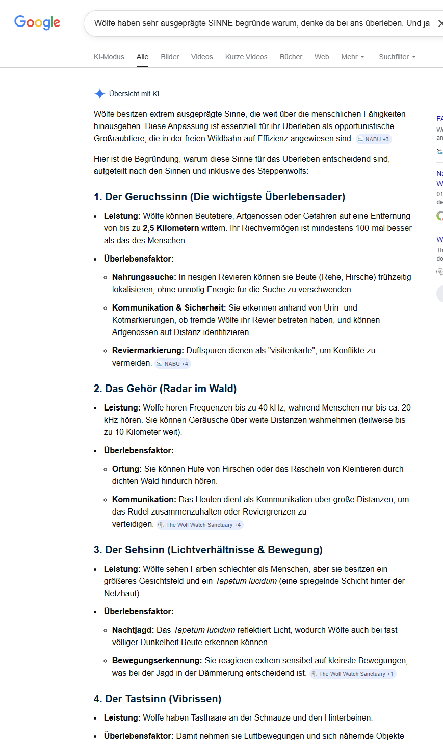 Und der „Steppenwolf“?Wenn du den Steppenwolf (in der Steppe/Tundra lebend) betrachtest, gelten diese Sinne noch intensiver: