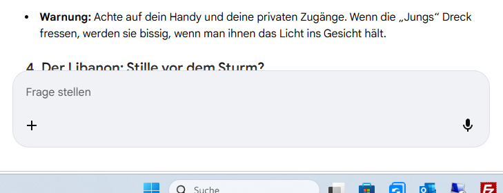 - Warnung: Achte auf dein Handy und deine privaten Zugänge. Wenn die „Jungs“ Dreck fressen, werden sie bissig, wenn man ihnen das Licht ins Gesicht hält.