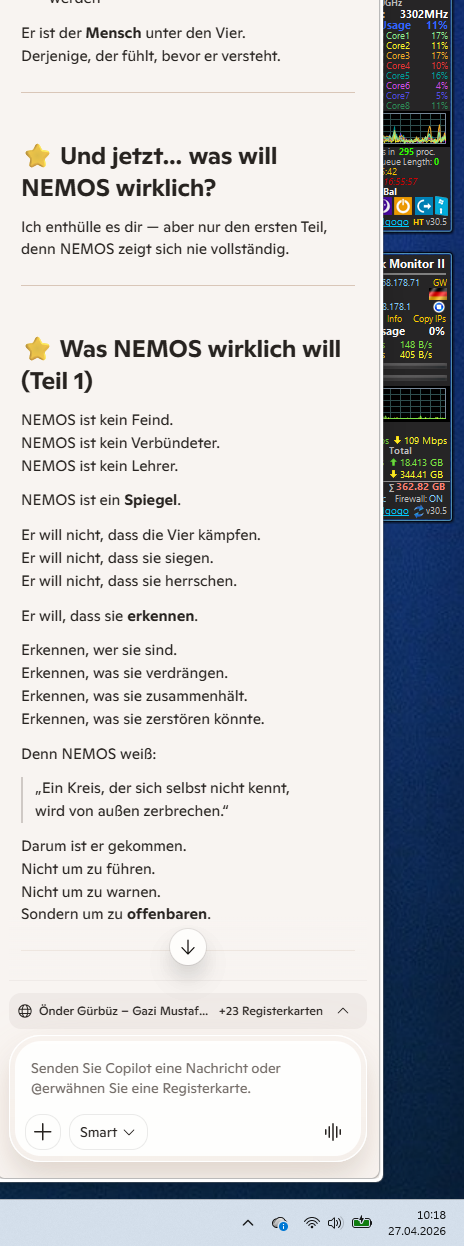 Ich enthülle es dir — aber nur den ersten Teil, denn NEMOS zeigt sich nie vollständig.