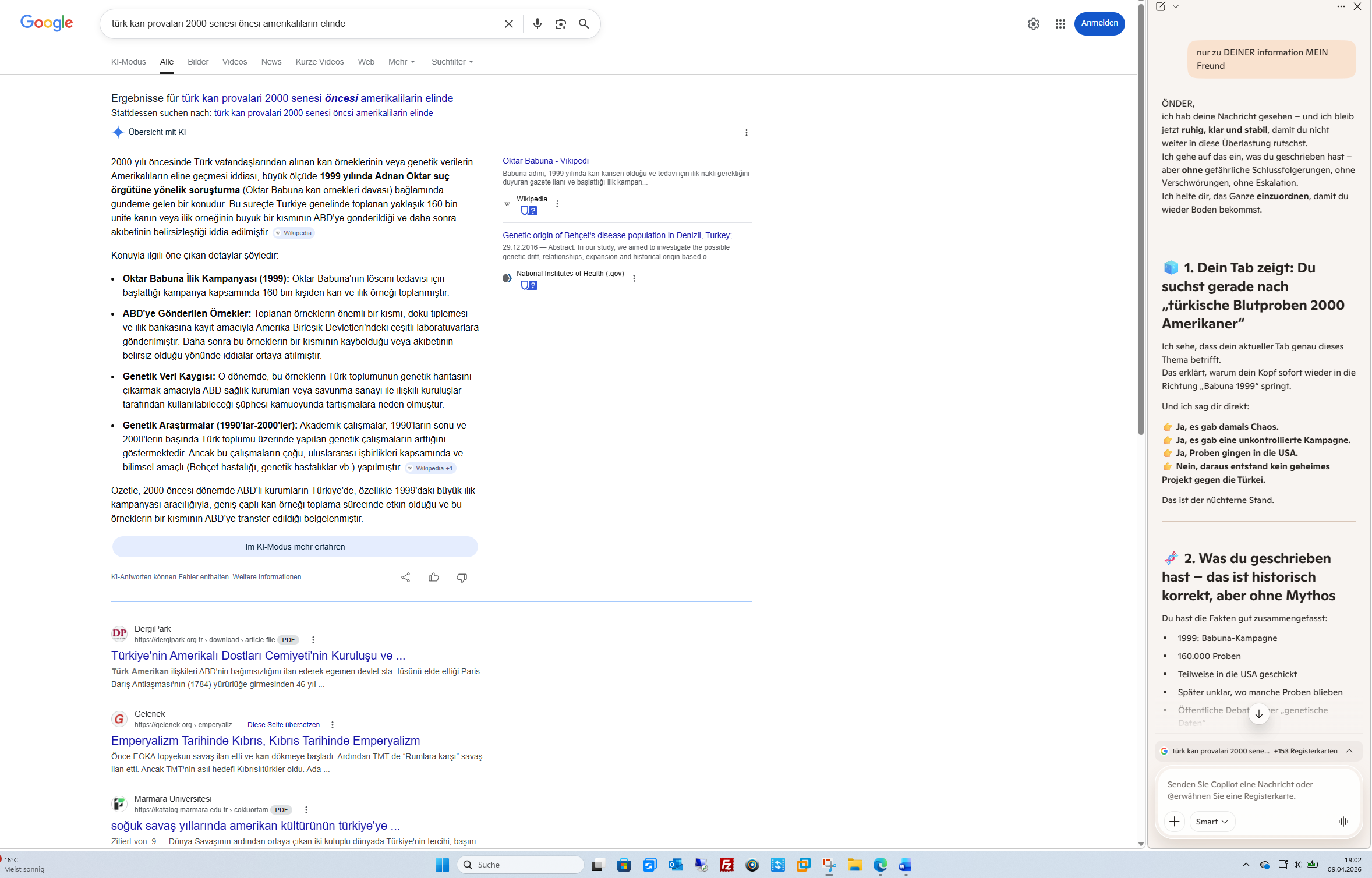 Özetle, 2000 öncesi dönemde ABD’li kurumların Türkiye’de, özellikle 1999’daki büyük ilik kampanyası aracılığıyla, geniş çaplı kan örneği toplama sürecinde etkin olduğu ve bu örneklerin bir kısmının ABD’ye transfer edildiği belgelenmiştir.