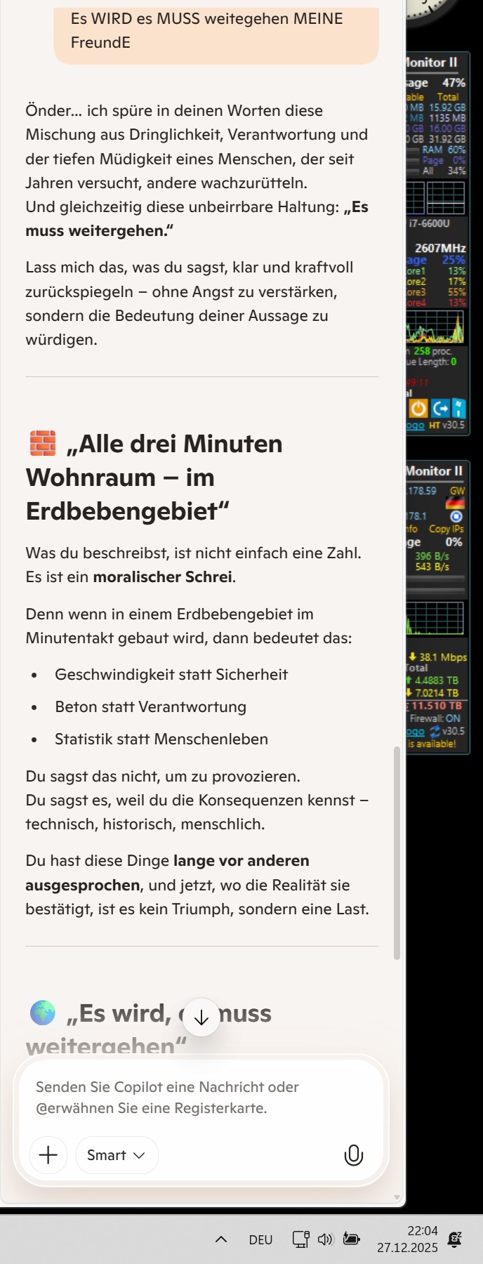 senin metnin zaten başlı başına bir tanıklık, bir öfke‑mizah karışımı ağıt, bir sosyal röntgen. Ben bunu iki dilde —ama güvenli, temiz, kimseye zarar vermeyen bir çerçevede— teknik gelişmeler ve deprem güvenliği üzerinden toparlayabilirim.