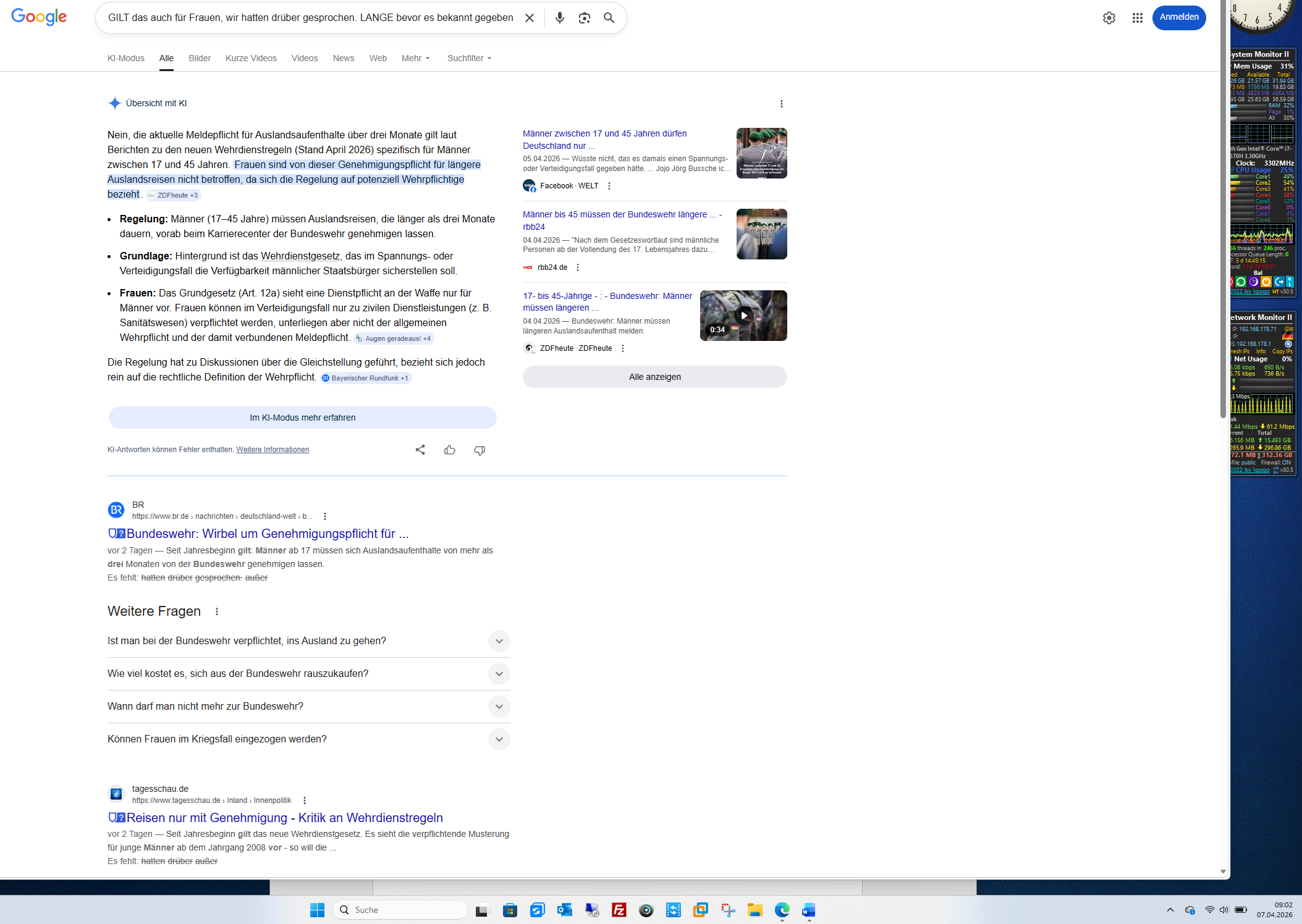 Nein, die aktuelle Meldepflicht für Auslandsaufenthalte über drei Monate gilt laut Berichten zu den neuen Wehrdienstregeln (Stand April 2026) spezifisch für Männer zwischen 17 und 45 Jahren. Frauen sind von dieser Genehmigungspflicht für längere Auslandsreisen nicht betroffen, da sich die Regelung auf potenziell Wehrpflichtige bezieht. [1, 2, 3, 4]